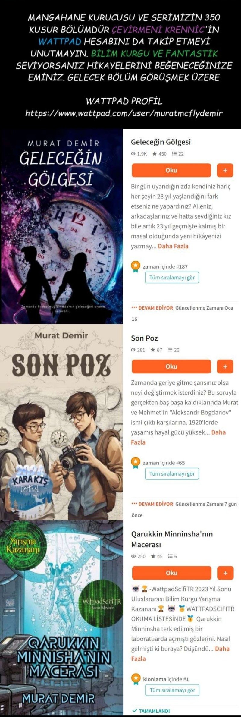 Manga Oku XYZ'de, her türden manga ve webtoonları okuyabilirsiniz. Minimum reklam ile desteklenen platformumuz, size akıcı ve keyifli bir okuma deneyimi sunuyor. Hemen siz de Manga Oku XYZ dünyasına katılın ve en sevdiğiniz serilere dalın!